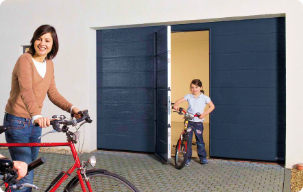 - Дополнительно можно заказать боковую дверь для организации отдельного входа. Это сокращает нагрузку на ворота и продлевает их срок службы.