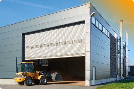 Конструкция из стали и алюминия рассчитана на экстремально высокую интенсивность эксплуатации. При открытии полотно рулонных ворот наматывается на вал над проемом, пространство под потолком остается свободным. Предназначены для перекрытия больших проемов, максимальной шириной до 36 м и высотой до 9 м.