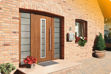 - Опционально двери можно укомплектовать боковыми элементами остекления, кнопкой звонка и видеодомофоном.