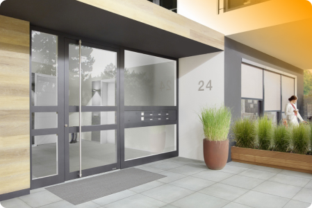 Компания Hörmann предлагает двери, изготовленные из алюминия, стали и стекла.